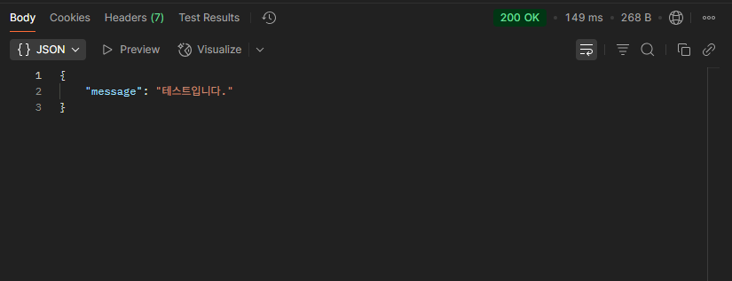 그럴 때 쓰는 것이 postman 어플리케이션인데 메서드 방식과 보내는 http 주소를 설정하면 요청 탭과 응답 탭 나눠서 반응을 테스트할 수 있다.