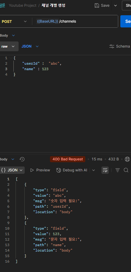 - 유효성검사를 통과하지 못했을 때 에러 처리