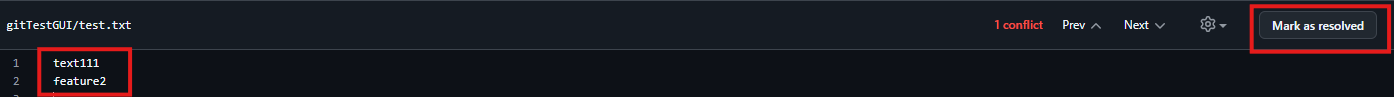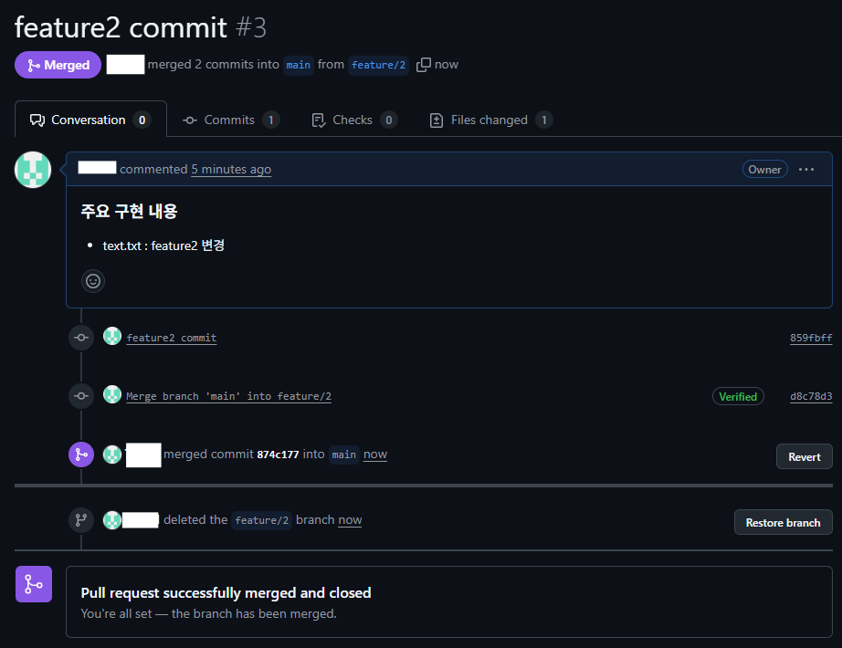 - test.txt 변경 : feature2