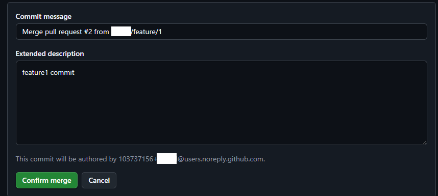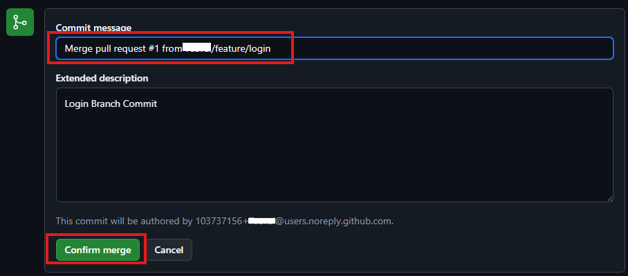 - merge > confirm >delete branch