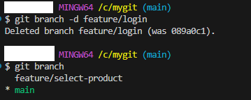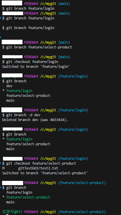 - git branch -d feature/login : 브랜치 삭제