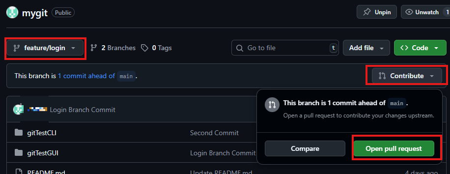- compare & pull request
