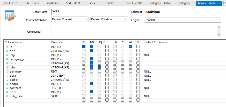 INSERT INTO books (title, img, category_id, form, isbn, summary, detail, author, pages, contents, price, pub_date)
